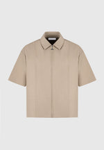 This Boxy Shirt is a versatile addition to any wardrobe. The concealed frontal zip provides a sleek and modern look, while the crease detail adds a refined touch. The neutral tone and classic collar make it easy to dress up or down, perfect for any occasion.