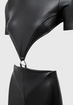 This stylish vegan leather jumpsuit is the perfect addition to your wardrobe. With a classic black hue and figure flattering design, it will be the go-to piece for any night out. Made from 100% vegan-friendly materials, you'll have an eco-friendly look that is sure to make a statement.